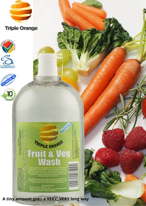 Triple Orange Fruit & Veg Wash helps remove wax, soil, and chemicals, using food-grade ingredients not tested on animals. Enjoy fresher-tasting produce with a drop of this 500ml bottle, which is also economical and eco-friendly.