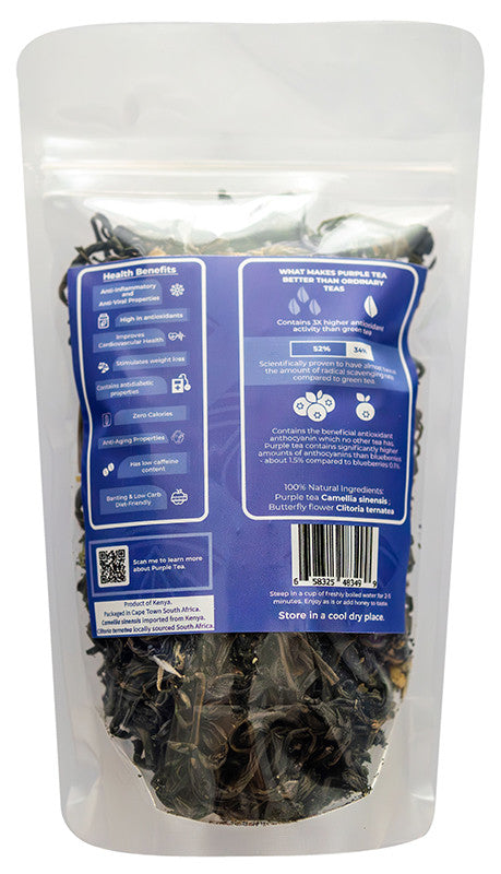 - Ingredients: Purple tea (Camelia sinensis); Butterfly flower (Clitoria ternatea).