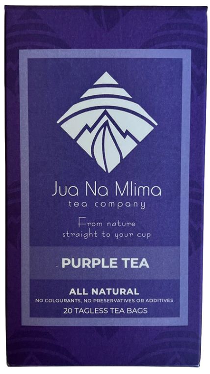 Experience the beauty of Jua Na Mlima Purple Tea, carefully selected from the fertile Kenyan volcanic terrain. Handcrafted with all-natural elements, this tea offers a delicate blend of floral, velvety, earthy, and gentle flavors. With three times the antioxidant power of green tea, it also provides anti-inflammatory, anti-viral, and age-defying benefits. Savor this calming drink for potential improvements in heart health, weight management, and blood sugar regulation. Embrace the vegan and Halaal nature of Jua Na Mlima Purple Tea, free of artificial colors, preservatives, and additives.