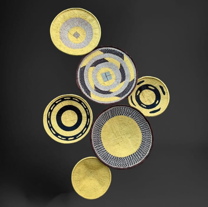 Transform your home with our set of 6 one-of-a-kind hand painted wall baskets. Each basket is uniquely crafted and designed to add a touch of sophistication and charm to your living space. The touches of yellow, mustard, grey and black make them extra versatile. With varying sizes and patterns, your home will radiate with individuality and make a bold statement. Hand painted by a talented and passionate local artist, these baskets embody the essence of summer, bursting with vibrant colors that will ignite your senses.