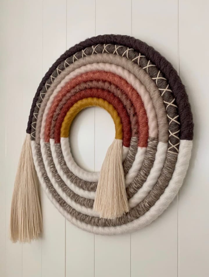 This wall piece boasts a distinctive color mix designed to set your home apart. Its warm and bold tones exude style and coziness, making it a perfect addition to any bedroom or living room decor. With customizable options to fit your specific needs, this is the piece for you!