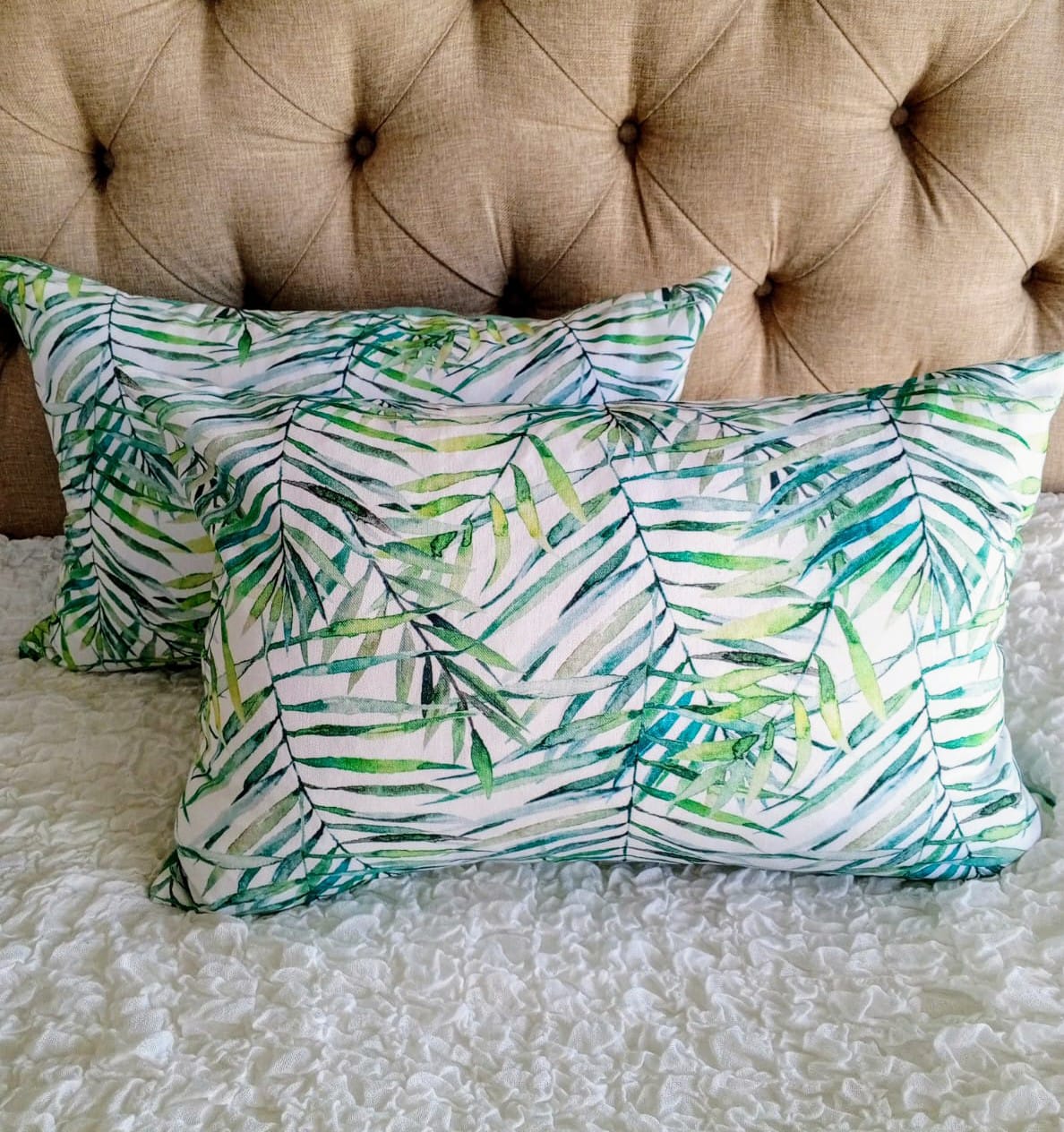 Discover the essence of holiday spirit in the comfort of your own home with our Palm Leaves scatter cushions! Made from luxurious cotton fabric and a velvety backing, these cushions are not only chic and both sides useful but also provide a touch of cozy comfort to your living space. Elevate the style of any room with these exquisite cushions.