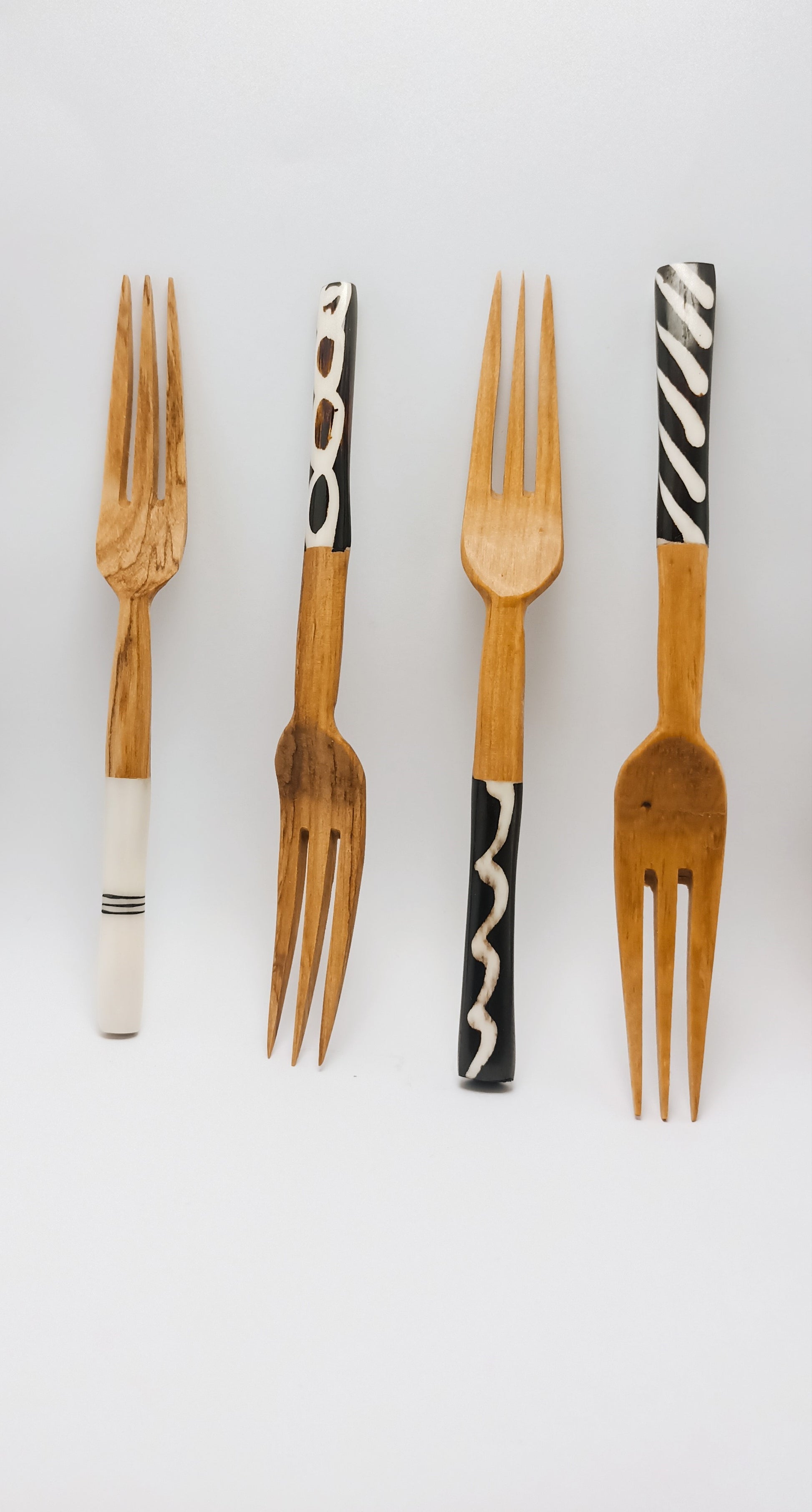 Indulge in the exquisite craftsmanship of our handmade Wooden Fork Set, complete with bone inserts. Perfect for any platter board, picnic utensil set, or as a striking addition to your kitchen. Each fork is expertly handcrafted by skilled artisans, ensuring that each piece is one-of-a-kind. Experience the passion and dedication put into each and every fork with our Wooden Fork Set.