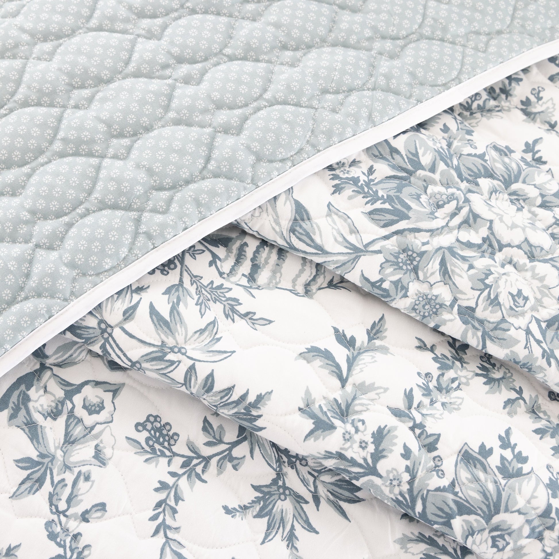 The Erin Duck Egg Quilt set is made of Microfibre and is fully reversible.