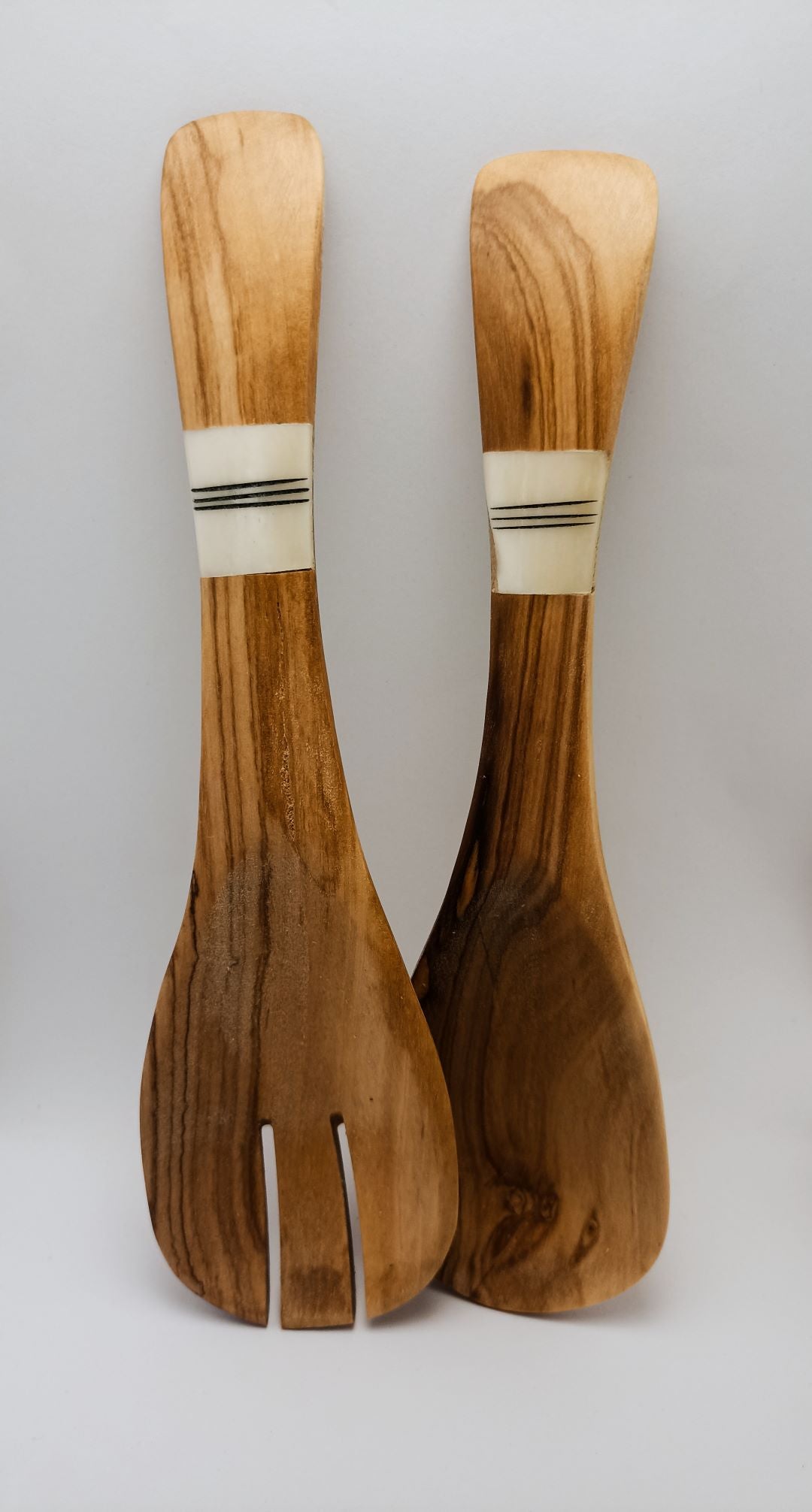 Elevate your dining experience with our Wooden Salad Spoon Set - Badger! Make a statement with patterned bone inserts that will impress and add a touch of elegance. Say goodbye to maintenance and fuss, and hello to pure enjoyment all summer long.